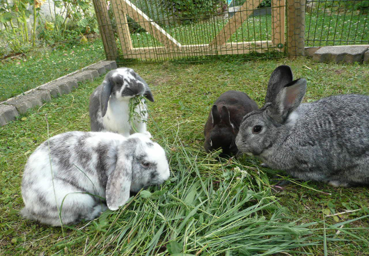 Schließlich fanden wir die Lösung in einem 2. Rammler, in den wir uns spontan verliebten. Damit war die Geschlechterkonstellation wieder ausgewogen und notfalls wollten wir 2 Pärchen halten. Dieses Mal glückte die Vergesellschaftung und so wurde aus ursprünglich einem Kaninchen eine harmonische Vierergruppe,