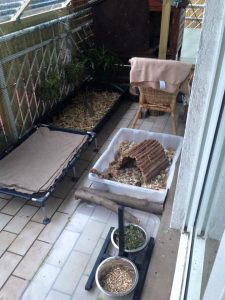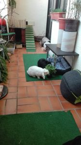 Auch in Balkonhaltung gilt: Mindestens 3m² dauerhaften Platz pro Tier plus täglicher Auslauf! Ist regelmäßiger Auslauf nicht möglich, empfehlen wir eine Gehegegröße ab 15m², damit die Kaninchen ihrem Drang nach Bewegung zumindest dort halbwegs nachgeben können.