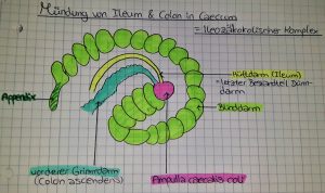 Der Grimmdarm (Colon) schließt sich an den Blinddarm an und ist wichtig für Hartkot- & Weichkotphase, also wann welcher Kot ausgeschieden wird.