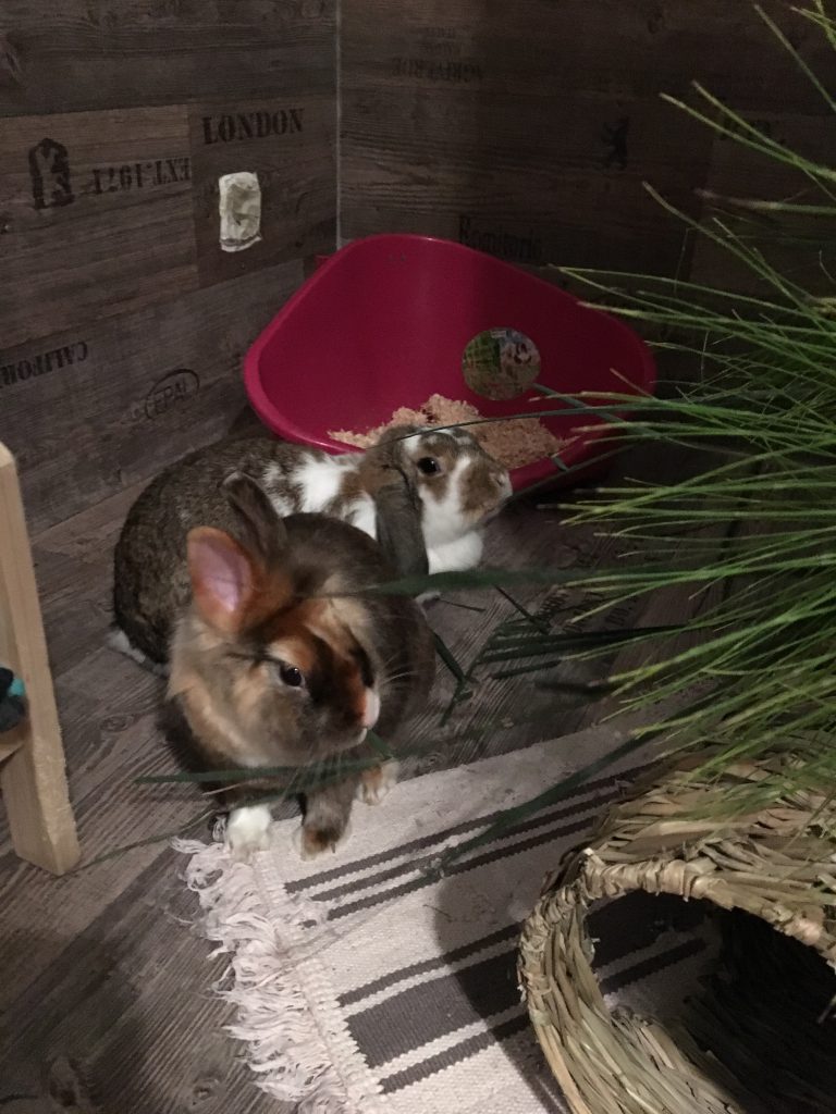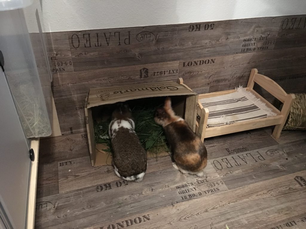 Auch unser anfängliches Gehege haben wir immer weiter optimiert und die zwei fühlen sich sichtlich wohl. Freie Wohnungshaltung ist uns wegen unseres Katers leider nicht möglich, sobald er draußen unterwegs ist übernehmen Lotti und Linus das Kommando.