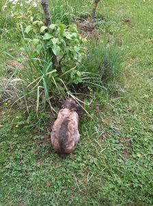 Natürlich hatte ich neben meinen Pflegetieren auch immer eigene Kaninchen, die so naturnah wie möglich in Großgruppen in freier Gartenhaltung leben. Aus privaten Gründen musste ich Ende letzten Jahres meine private Pflegestelle aufgeben und habe auch für einen Großteil meiner eigenen Tiere ein neues Zuhause gesucht. So leben jetzt nur noch die 4 Kaninchen meiner Töchter und vier Handicapkaninchen (die schwer vermittelbar sind) bei uns.