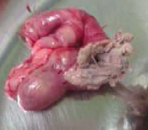 Am nächsten Morgen stellte ich dann fest, dass sie nur ganz wenig gefressen hat – also wieder zum Tierarzt. Der Bauch wurde ganz genau abgetastet und dann geröntgt. Auf dem Röntgenbild war eine merkwürdige Veränderung. Was genau, konnte man da noch nicht sagen, könnte der Darm sein aber auch die Gebärmutter. In meinem Kopf klingelte es da gewaltig! Der Züchter hatte als Grund für die Abgabe gesagt das sie eine Fehlgeburt hatte (ein totes Baby) und sie ihr keine weiteren Geburten mehr antun wollte. Also habe ich dem Tierarzt davon berichtet und gesagt das ich mich erkundigen werde, wann die Fehlgeburt war. Ich hatte den Verdacht, dass da wohl mehrere Embryos unterwegs waren aber nur eines tot geboren wurde. Es sich also um ein weiteres Baby handeln könnte was noch in ihrem Bauch ist und da jetzt Probleme macht.